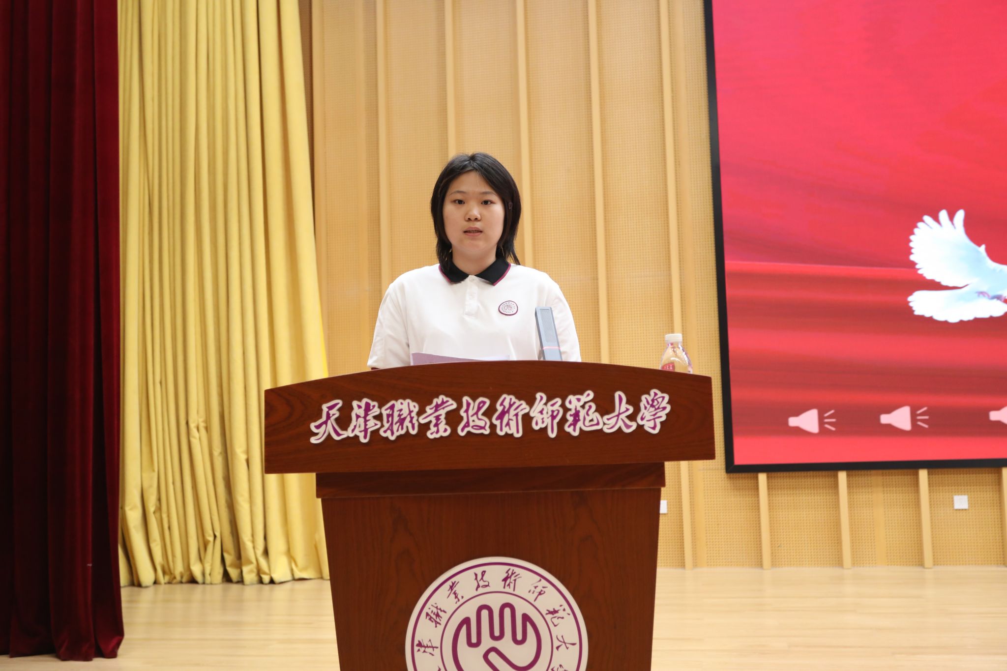 制造工程系3D2561班同学张溪芮作为军训先进个人代表发言,向辛勤耕耘在教育一线的老师们致以最崇高的敬意,作为新生的一员,她表示新学期的号角已经吹响,新的征程就在脚下。全体新生将携起手来,以梦想为帆,以勤奋为桨,在老师的引领下,乘风破浪,砥砺前行!用优异的成绩和娴熟的技能,回报老师的谆谆教诲,回报父母的殷切期望,为天职师大附属技校增添新的光彩!
