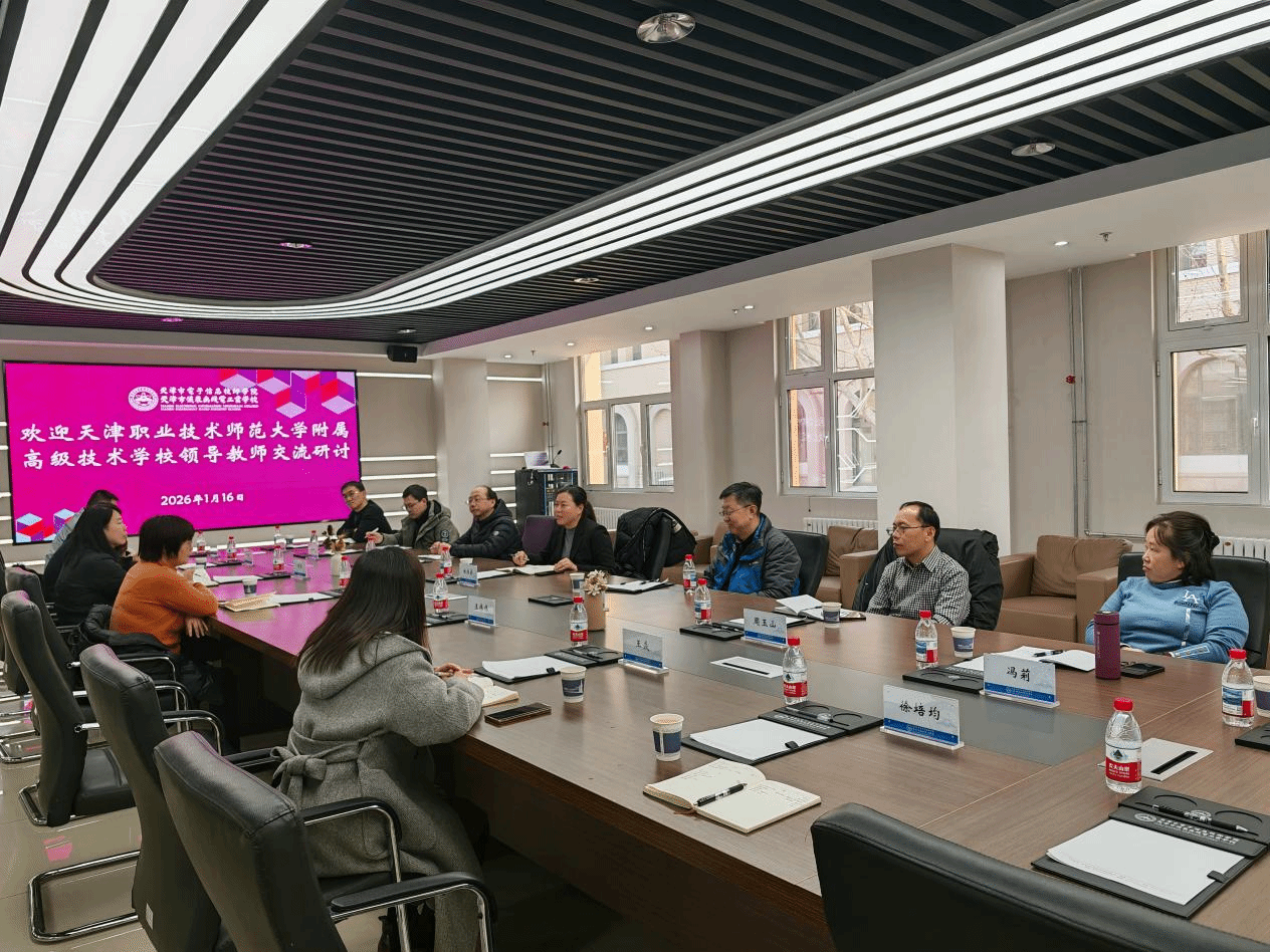 参观结束后,双方围绕专业建设、校企合作、工学一体化建设、技能大赛集训等核心议题展开座谈交流。会上,万文艳详细分享了天津市电子信息技师学院的基本情况、在校生规模、专业设置、布局优化、校企共建实训基地、工学一体化课程开发以及技能大赛备赛等方面的实践经验。姚继蔚一行结合自身教学教研工作实际,就专业课程体系搭建、实训资源共享、企业资源对接、工学一体化建设等问题与对方进行了深入探讨。