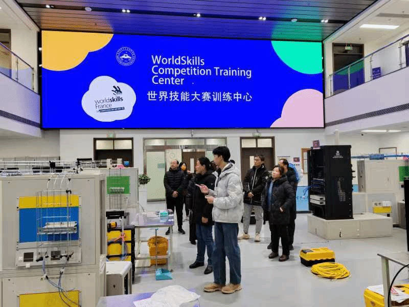 姚继蔚一行先后走进校园、实训室、工学一体化教室以及世界技能大赛中国集训中心进行参观。双方就世赛基地的设备运维、选手选拔、集训管理等细节及实训课程设置与大赛选手的比赛形式展开了即时交流。