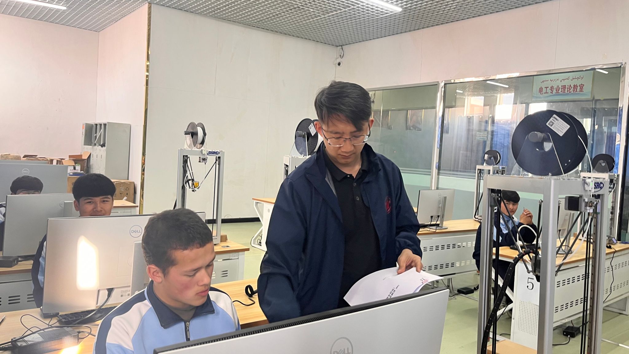 援疆期间,徐洋老师充分发挥我校在职业教育领域的特色优势,承担了《AutoCAD》、《机械制图》、《3D打印技术应用》等核心课程的教学任务。面对学生汉语水平参差不齐的现状,他放慢语速、反复示范,课后主动与学生沟通,确保“每个知识点都能听懂、每项技能都能掌握”。